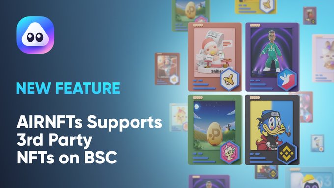 AirNFTs now supports third-party non-fungible tokens (NFT) on its BNB Chain marketplace. The third-party NFTs can be easily opened and accessed with the smooth integration built by the AirNFTs team.