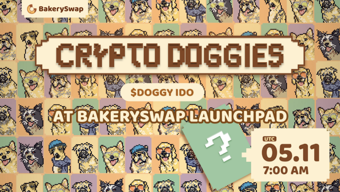 Crypto Doggies, the NFT project with its supporting memecoin, $DOGGY, is set to launch its IDO on the Bakery Launchpad. The IDO will see 4 billion $DOGGY go on sale from a total of 5 billion tokens, where 1 million $DOGGY = 1BNB. The launch will occur on May 11th, around 7:00 AM UTC with the precise block height of the launch yet to be announced. According to the BakerySwap medium, the remaining 1 billion tokens will be used “as initial liquidity, rewards to the Bakery community, Bakery promoters, and the Doggy developers & artists working on the Crypto Doggy project.