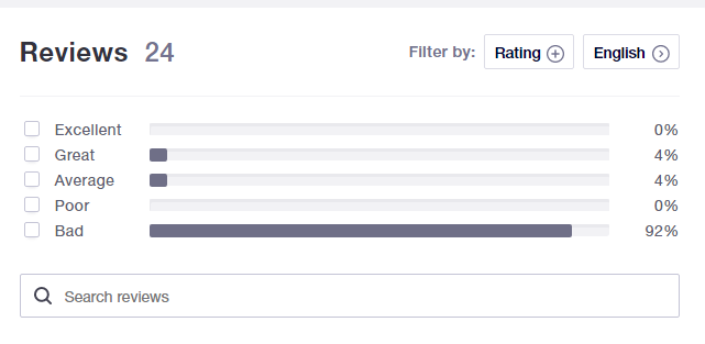 According to Trust pilot review, Finexbox shows following percentage based on 24 reviews,
