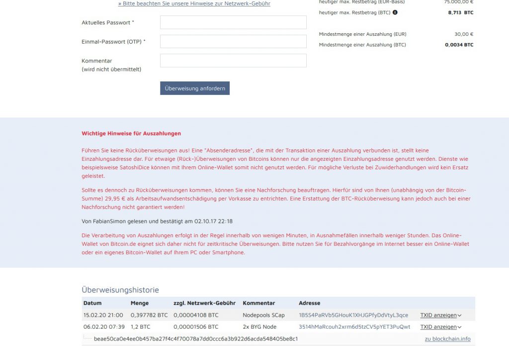 on a hard fork and it makes no sense to buy that coin at the moment.1) Screenshot 1 (payment_to_finexbox.jpg): Transfer from my bitcoin.de