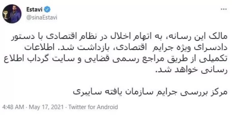 Sina Estavi, the man behind the $2.6 million purchase of Jack Dorsey’s first tweet as an NFT, was arrested in Iran on allegations of causing economic disruption. A tweet on Monday morning through the verified account of Estavi confirms the arrest. The tweet was subsequently removed hours later, sparking speculation the Tweet was made by Iranian authorities.