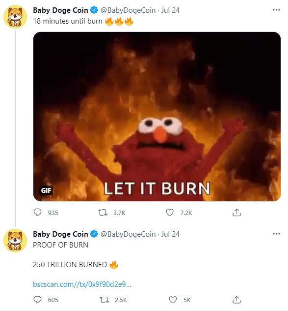 Baby Doge Coin has taken another step to increase its value by burning 250 Trillion tokens, or $425K USD. The popular meme token on Binance Smart Chain (BSC) has seen enough interest that the burn was necessitated.